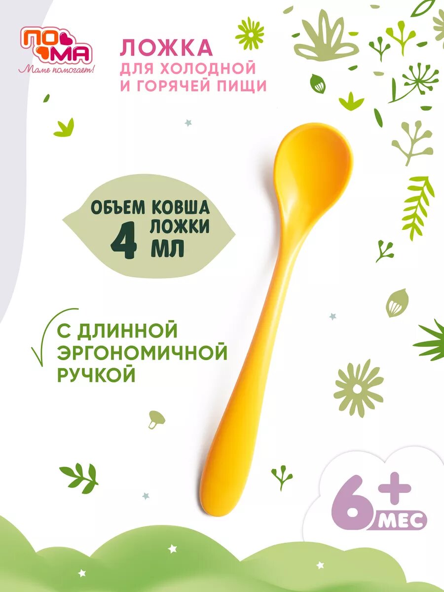 Ложка для прикорма ПОМА, для детей от 6 мес, желтая, длинная информация: