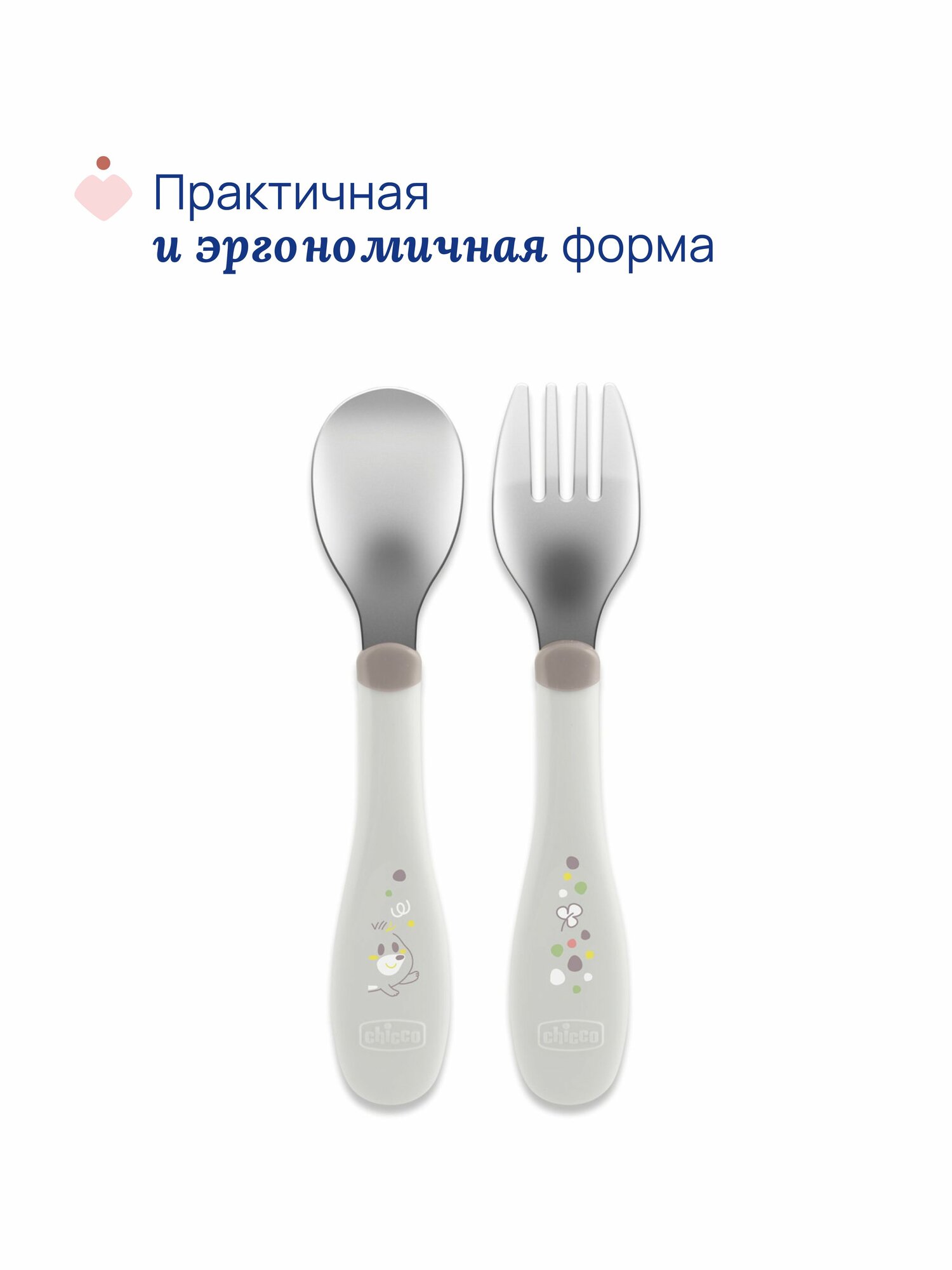 Набор детских столовых приборов Chicco First Cutlery ложка и вилка от 12 месяцев, посуда для кухни 674 ₽