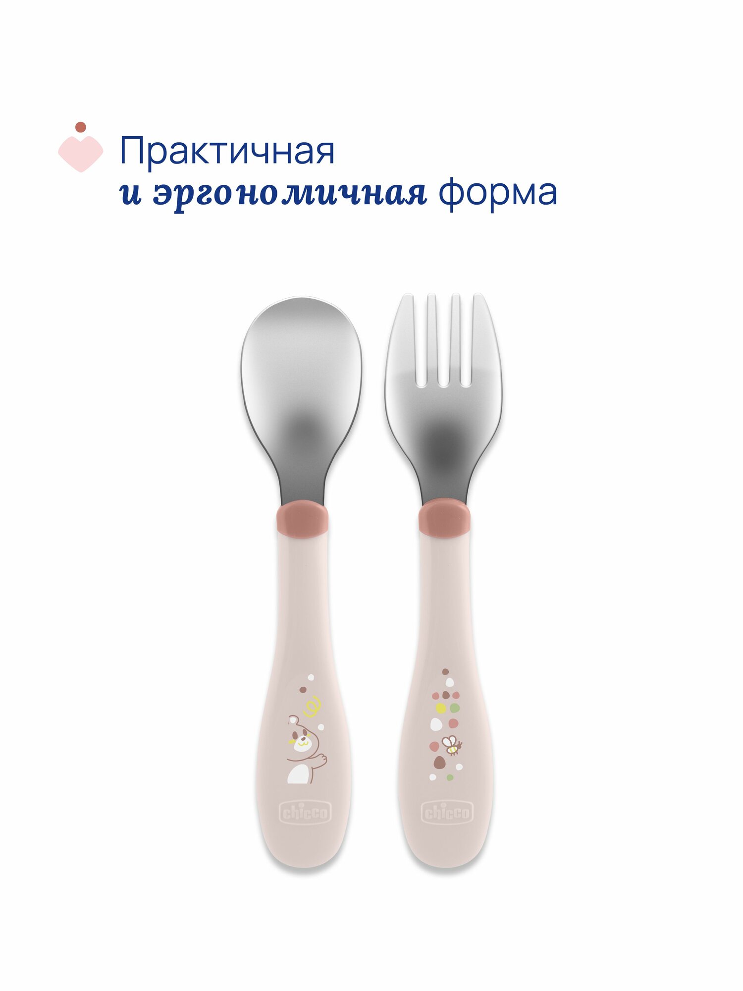 Набор детских столовых приборов Chicco First Cutlery ложка и вилка от 12 месяцев, посуда для кухни 674 ₽