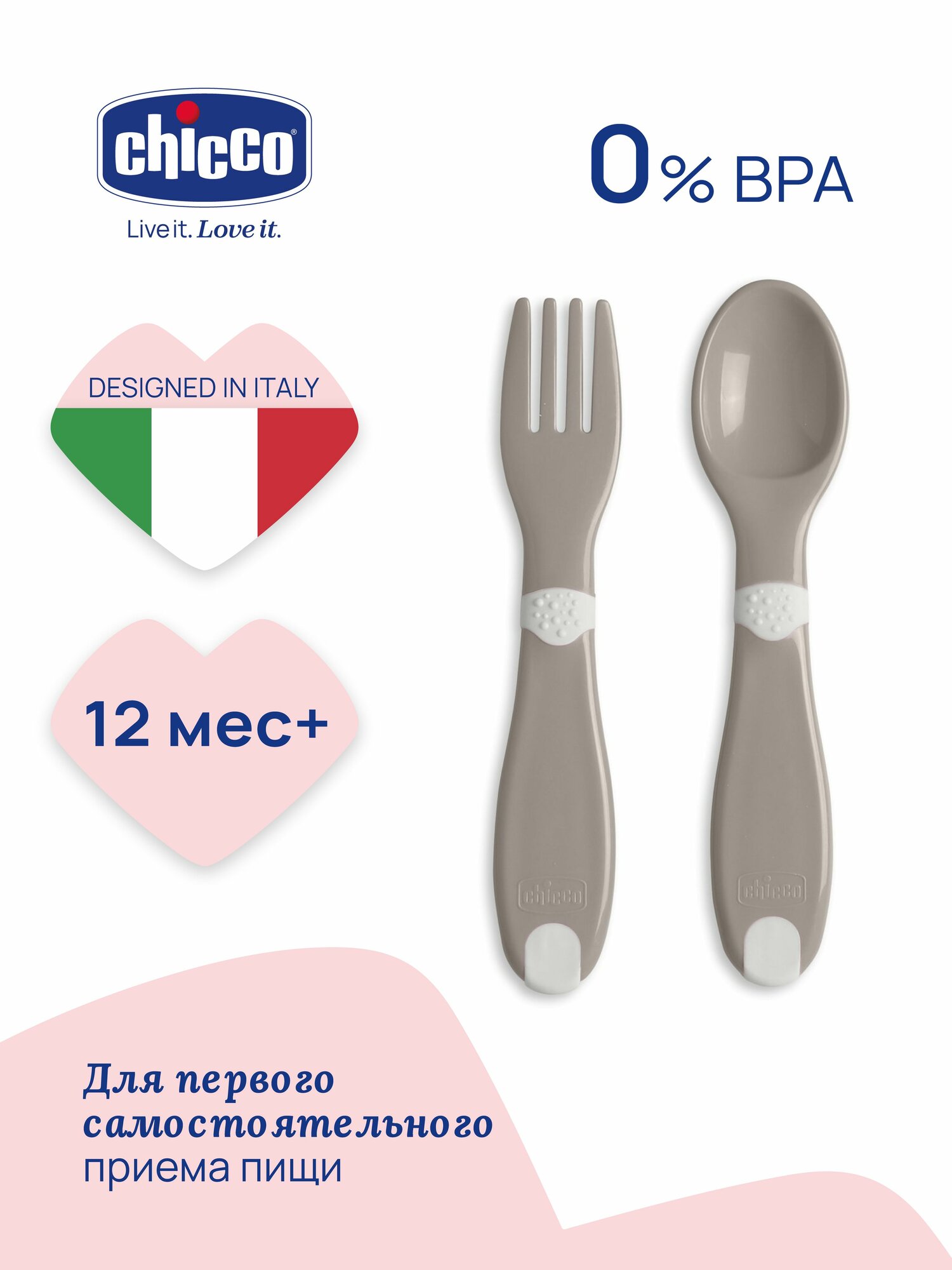 Набор детских столовых приборов Chicco First Cutlery ложка и вилка от 12 месяцев, посуда для кухни 674 ₽