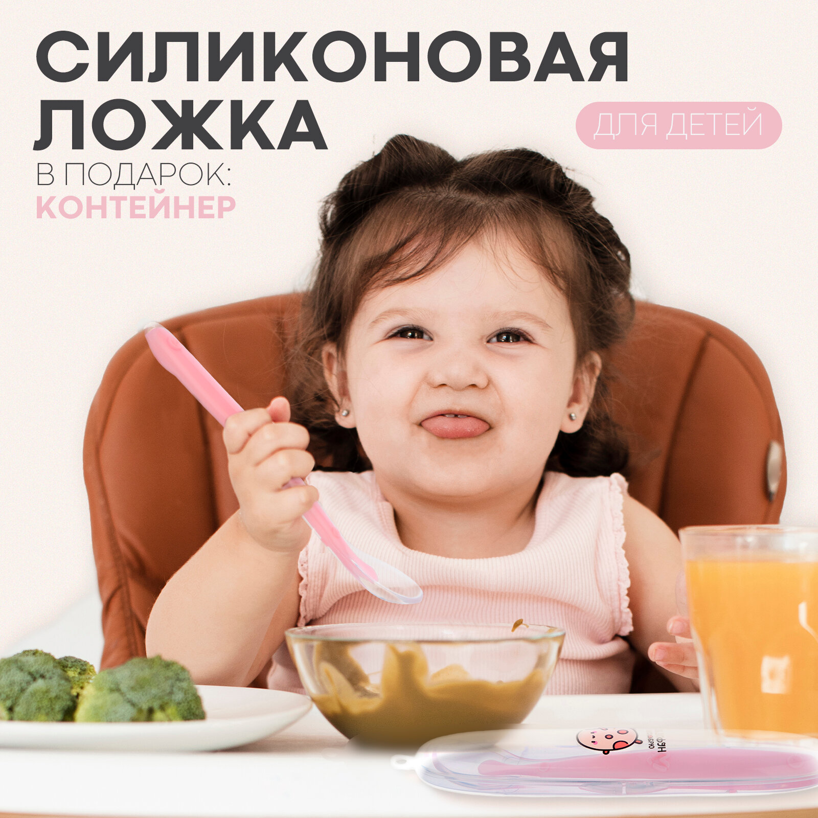 Ложка детская для кормления силиконовая, от 5 мес., цвет розовый