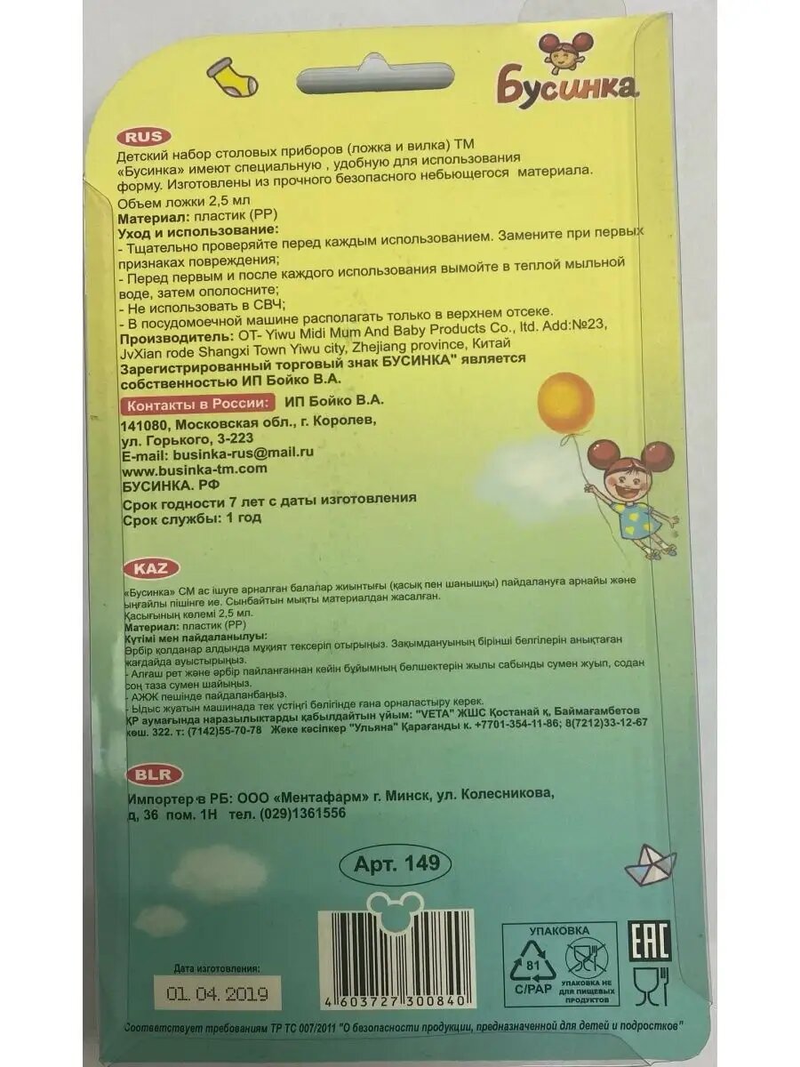 Отзывы на Набор столовых приборов "Ложка и Вилка" Бусинка, для детского питания, пластик, синий