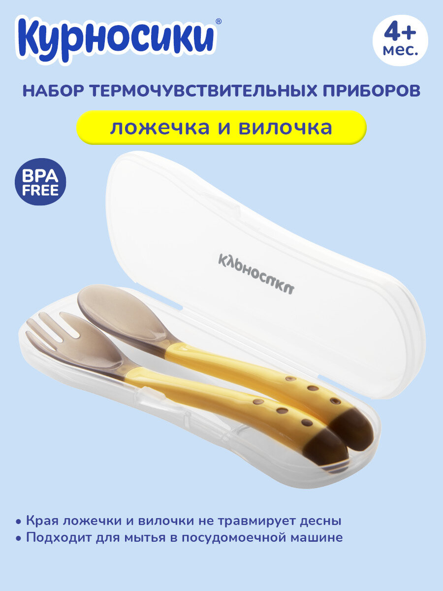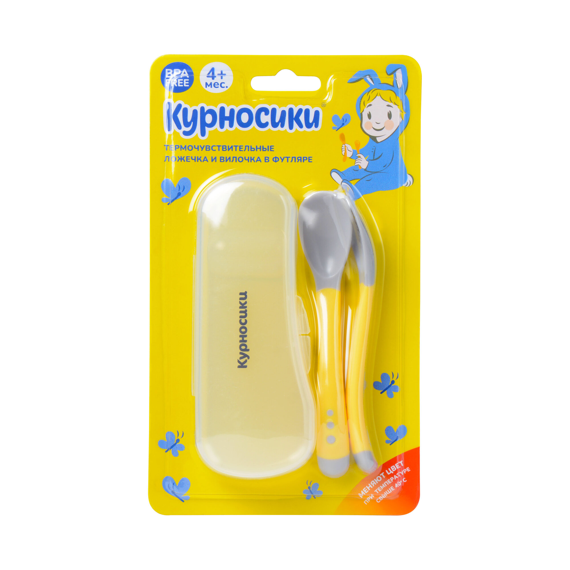 Ложечка и вилочка для новорожденных и детей Курносики в футляре для прикорма, 2 шт. информация: