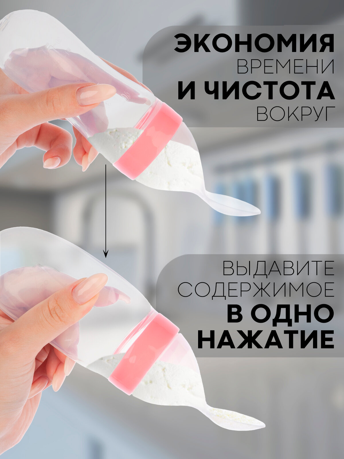 Ложка пластиковая дозатор для кормления, бренд Картофан, с пластиковой ложкой, розовая информация: