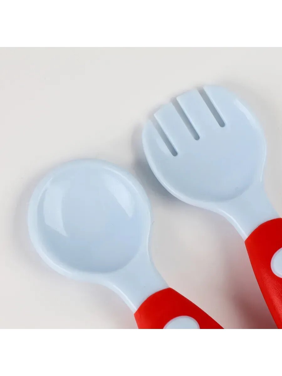 Детский набор столовых приборов для кормления и прикорма малыша, комплект 4 предмета вилка 2 шт и ложечка 2шт