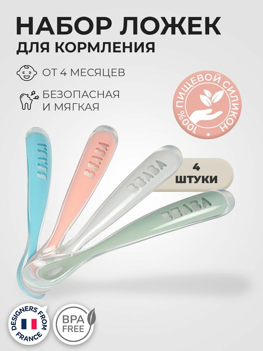BEABA набор из 4-х силиконовый ложек для первого прикорма информация: