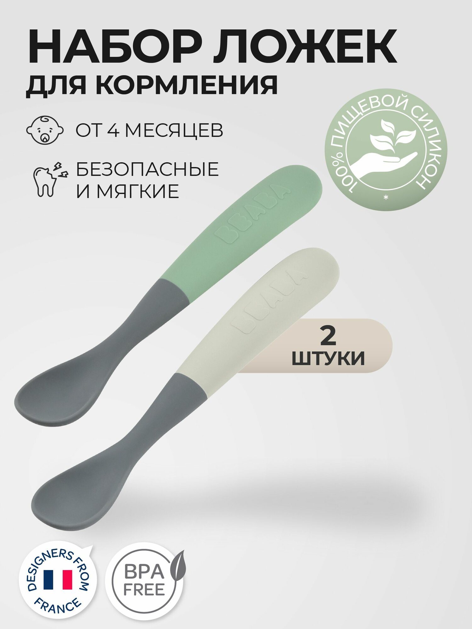 BEABA ложка для кормления детская 2 шт, силиконовая ложечка для прикорма для ребенка информация: