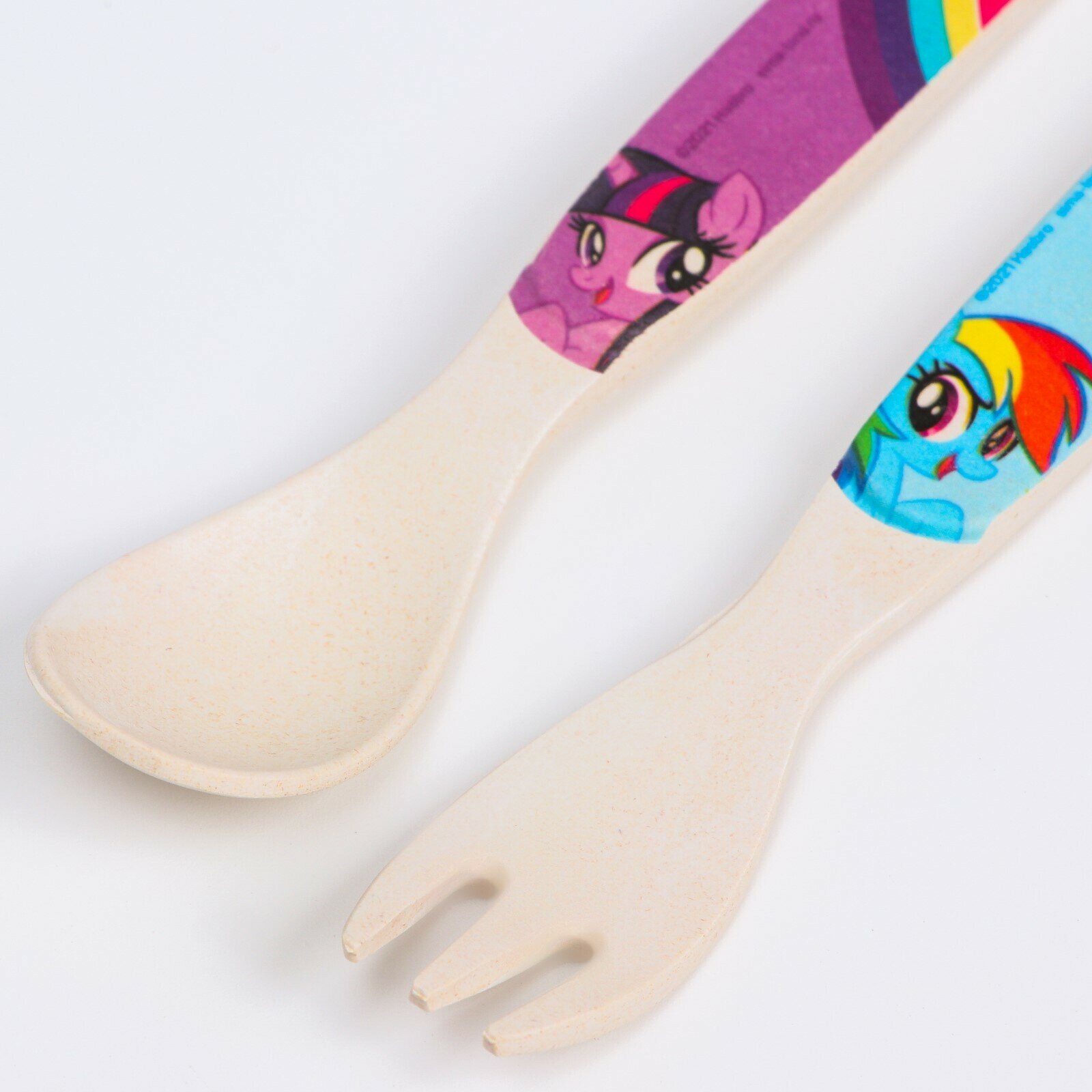 Набор детских столовых приборов для кормления My Little Pony "Искорка": вилка и ложка из бамбука, разноцветные информация: