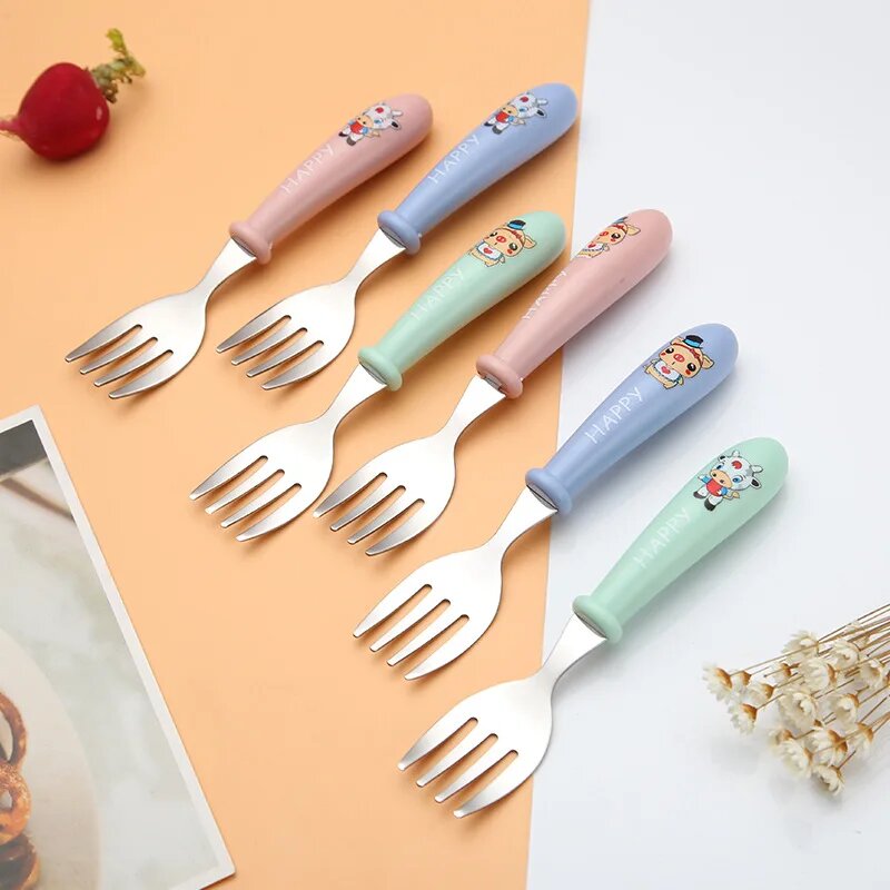 Отзывы на Детские столовые приборы из нержавеющей стали 2 шт, 1pc blue spoon