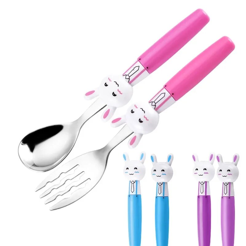 Отзывы на Детская ложка и вилка из нержавеющей стали с Кроликом, Сиреневый
