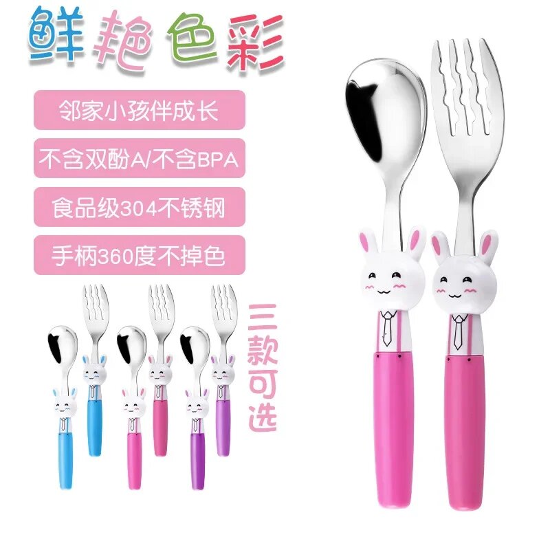 Отзывы на Детская ложка и вилка из нержавеющей стали с Кроликом, Blue spoon