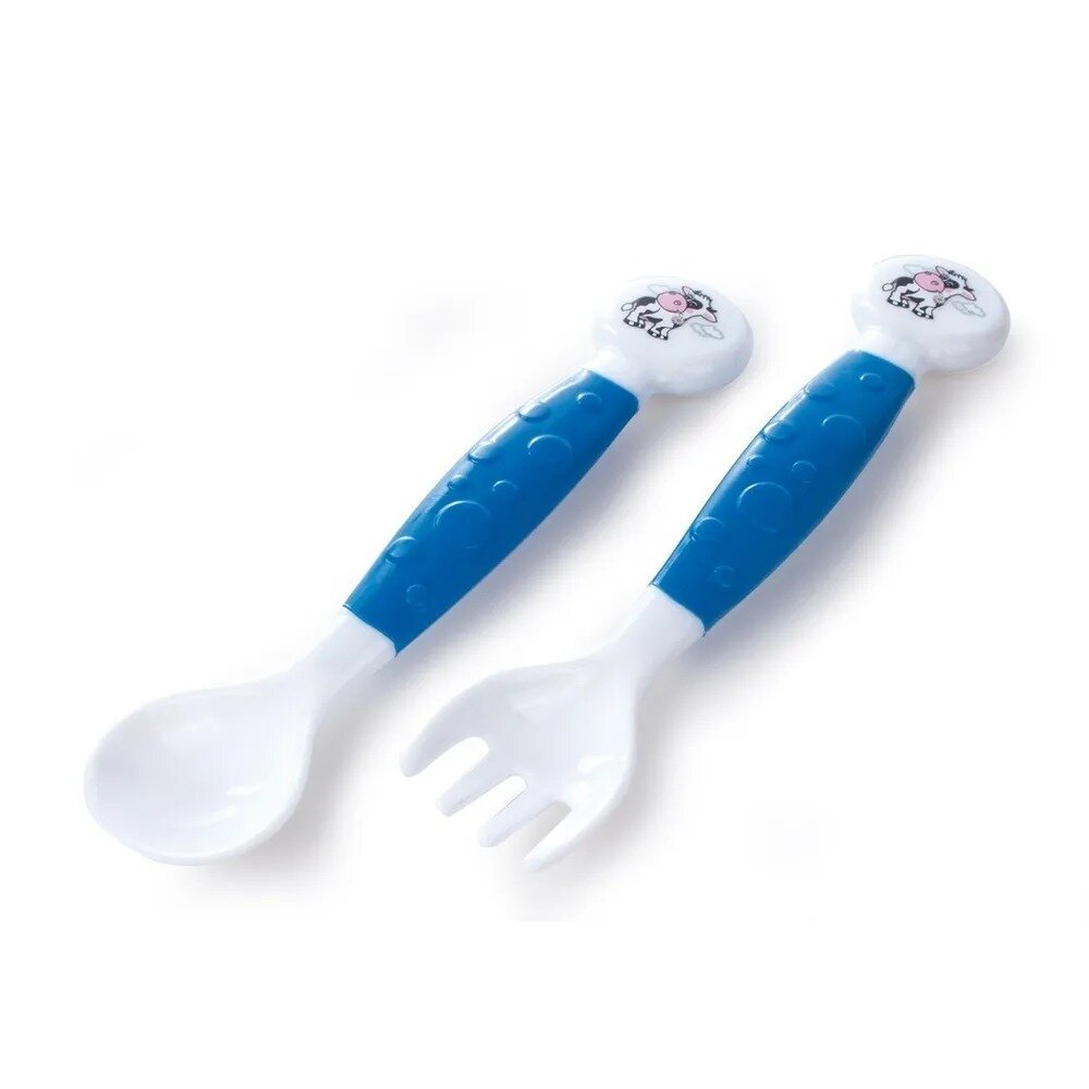 Отзывы на Набор Canpol Babies Вилка и ложка гибкие Little cow, 12м+, синий