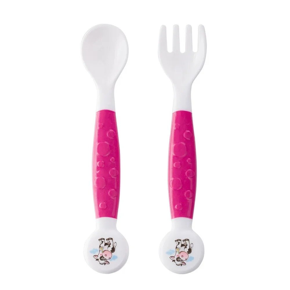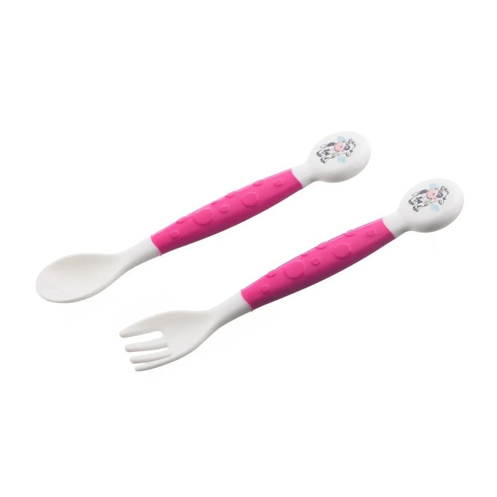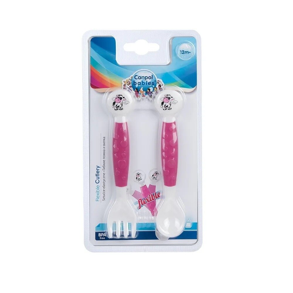 Набор Canpol Babies Вилка и ложка гибкие Little cow, 12м+, розовый информация: