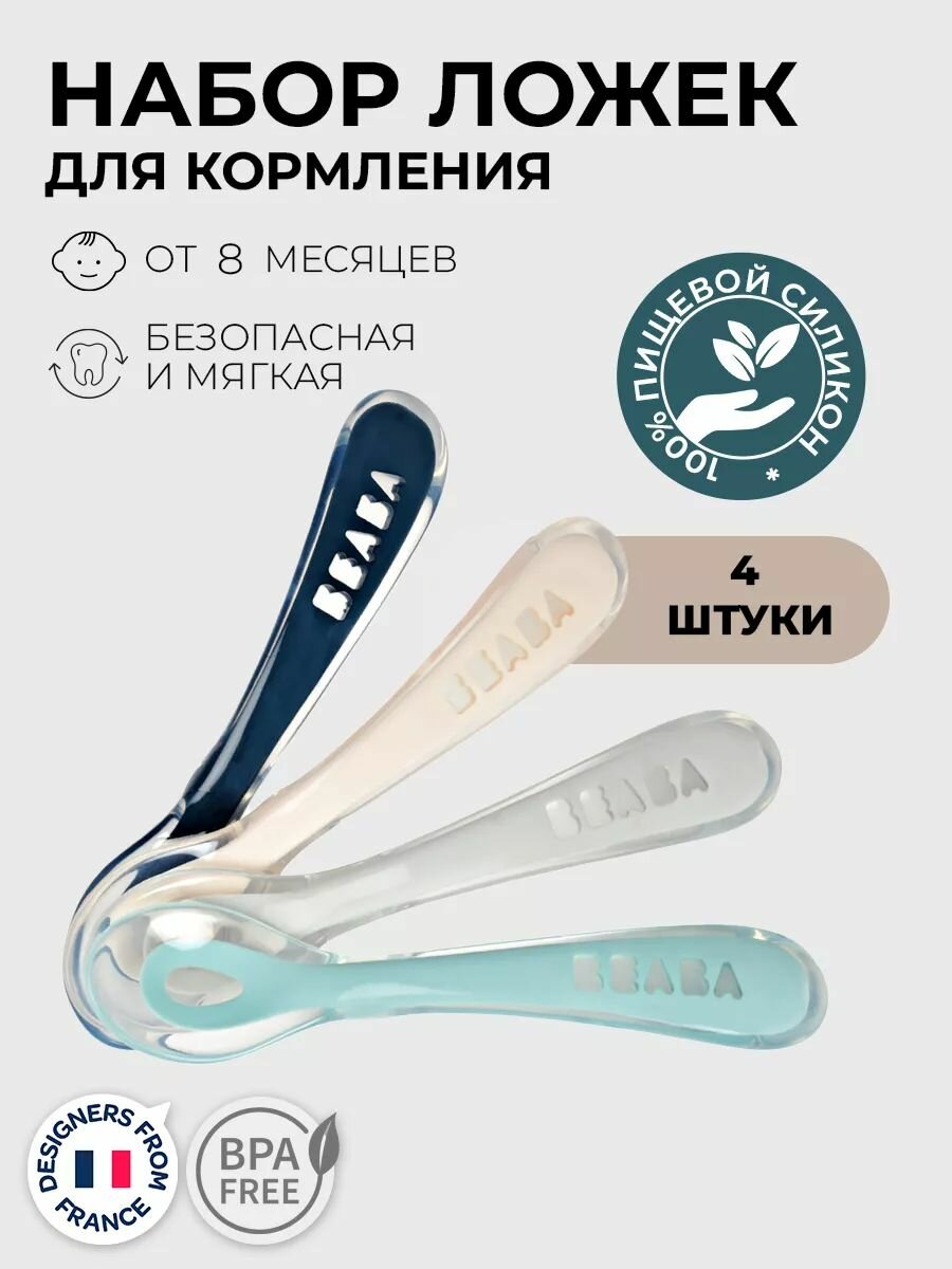 BEABA ложка для кормления детская 4 шт, ложечка для прикорма, ложка силиконовая для ребенка информация: