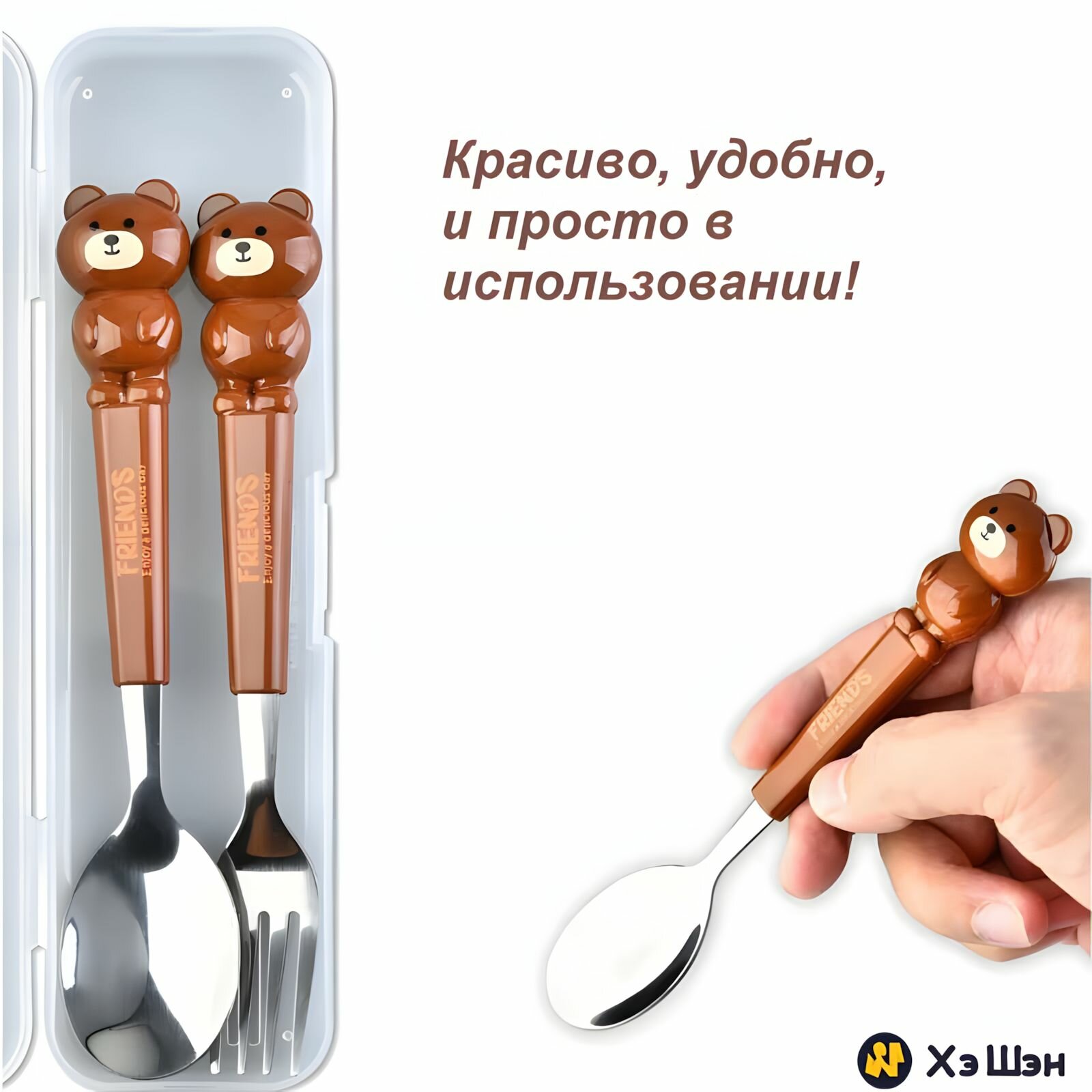 10 цен на Ложка детская "Лягушка", набор с вилкой, нержавеющая сталь/пищевой пластик