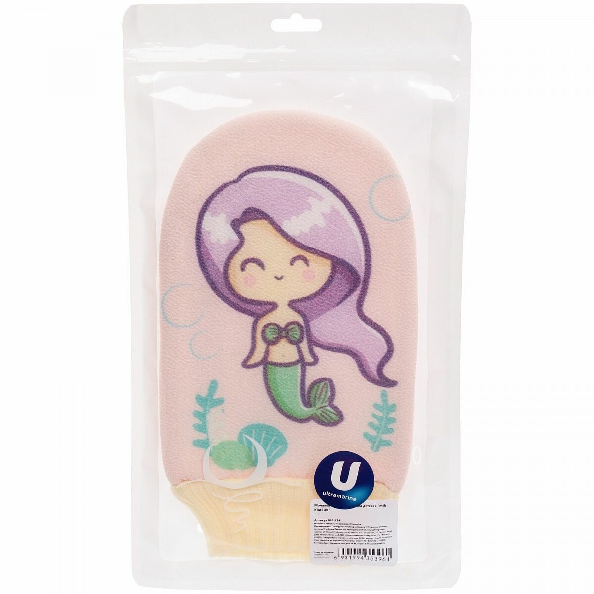 Мочалка-варежка детская MIR KRASOK для тела, русалочка Глория, цвет розовый, 23х15 см, Zip пакет информация: