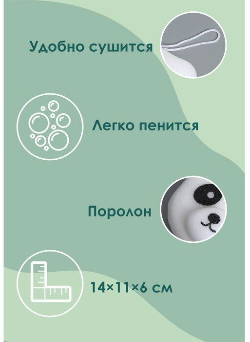 Губка для тела Доляна «Панда», детская, для купания, 14×11 см, белая информация: