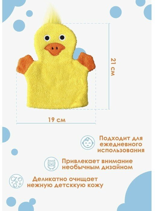 Мочалка варежка детская Доляна «Уточка», для купания, 21 см информация: