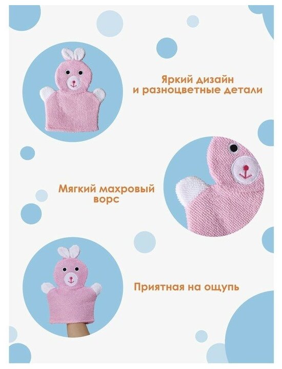 Мочалка-варежка детская для купания Доляна «Зайка», 23 см, 578731 информация: