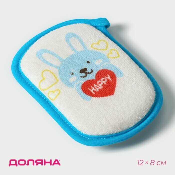 Мочалка для купания Доляна «Заяц», 12×8 см, цвет синий, 2 штуки информация: