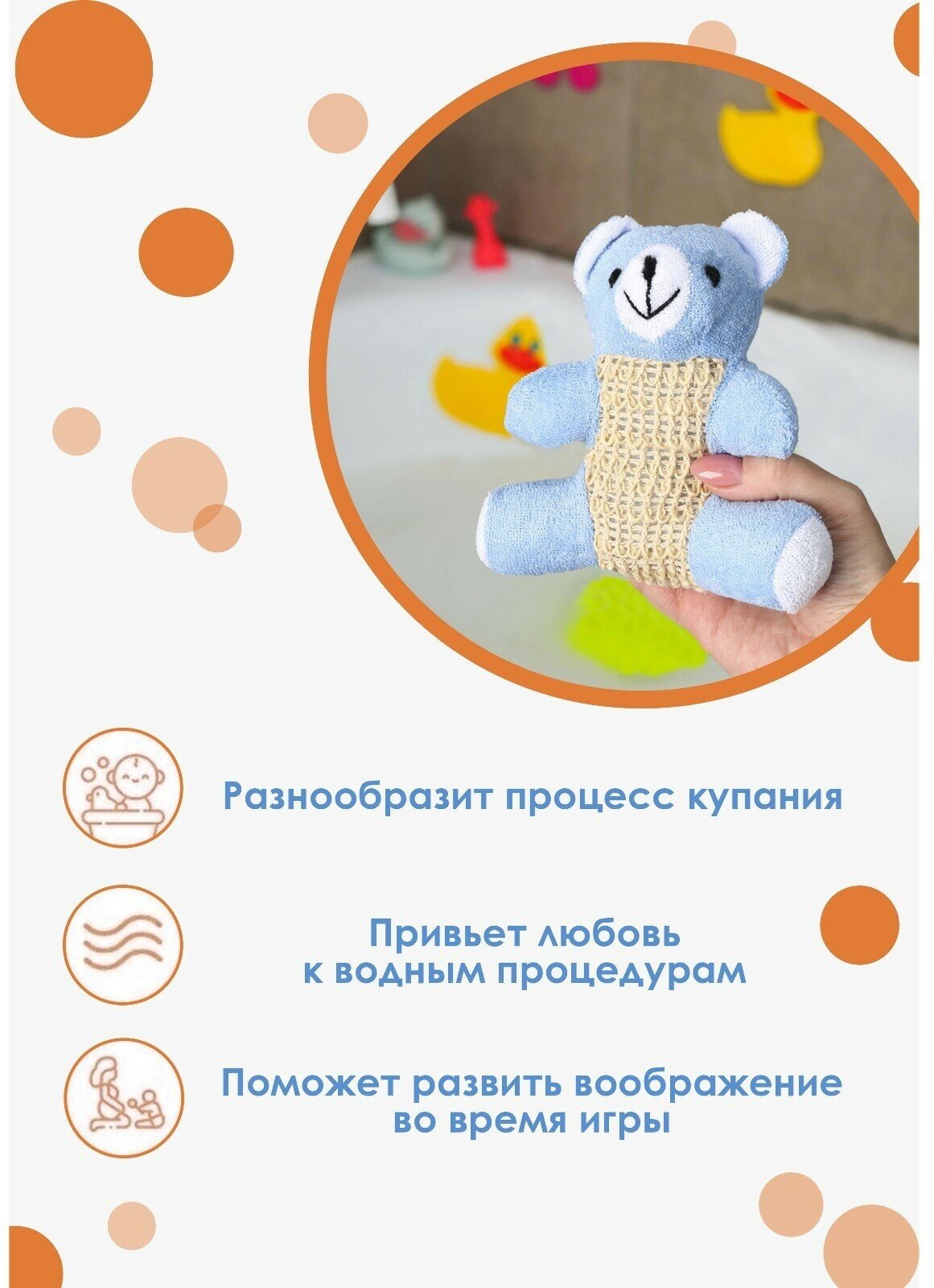 Мочалка - игрушка детская «Мишутка», сизаль, для купания, 10.5×11.5 см, голубая информация: