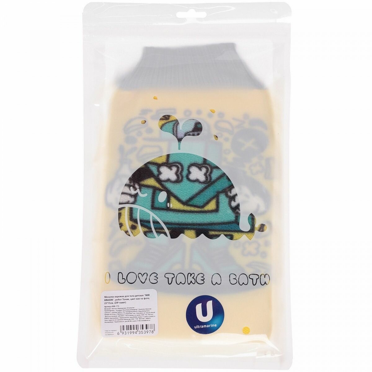 Мочалка-варежка детская MIR KRASOK для тела, робот Тоник, цвет желтый, 23х15 см, Zip пакет информация: