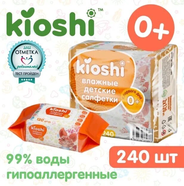 10 цен на Набор влажных салфеток KIOSHI, для новорожденных, 2 упаковки по 120шт.