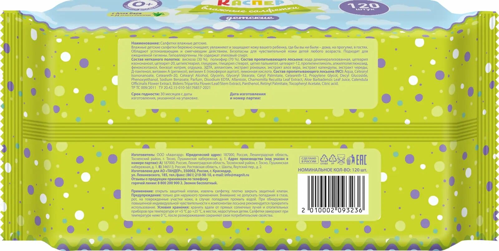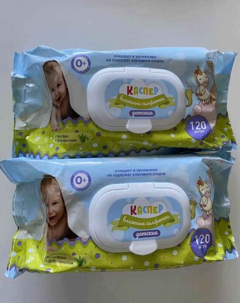 10 цен на Салфетки влажные детские Каспер с клапаном, 120 шт, 2 уп.