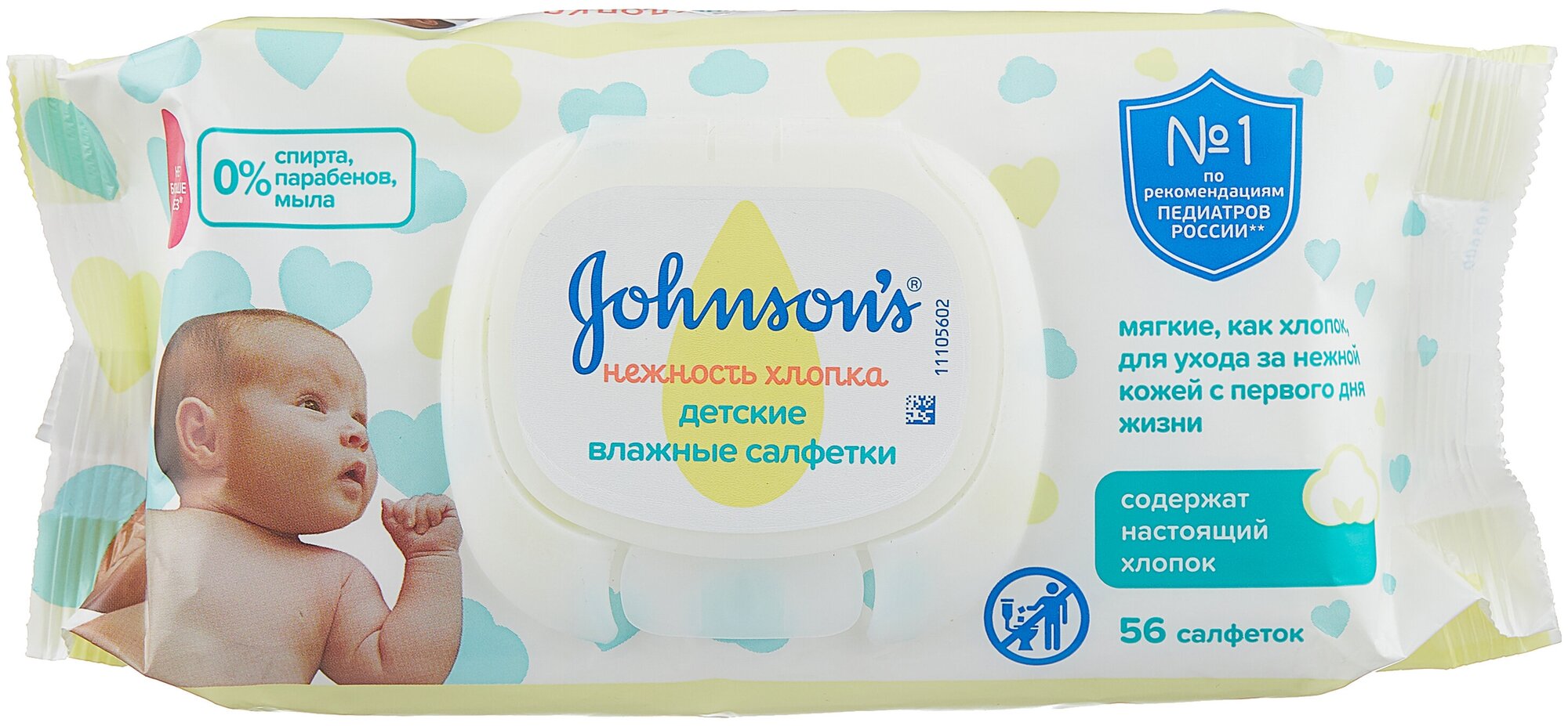 Влажные салфетки Johnson's Baby "Нежность хлопка", гипоаллергенные, 56шт информация: