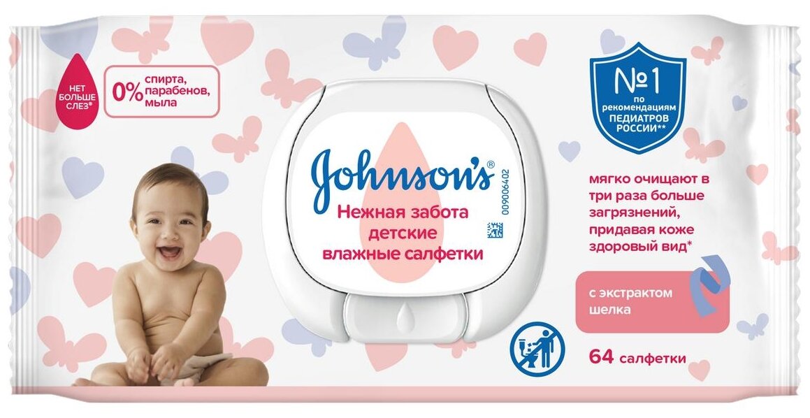 Влажные салфетки JOHNSON'S Нежная забота с экстрактом шёлка, пластиковая крышка, 3 уп. * 64 шт. информация: