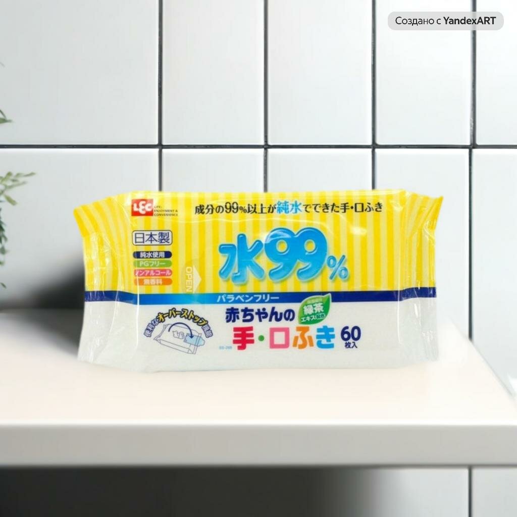 IPLUS Влажные салфетки 99% детские для рук лица игрушек сосок бутыл поильн с экстр зел чая 60шт информация: