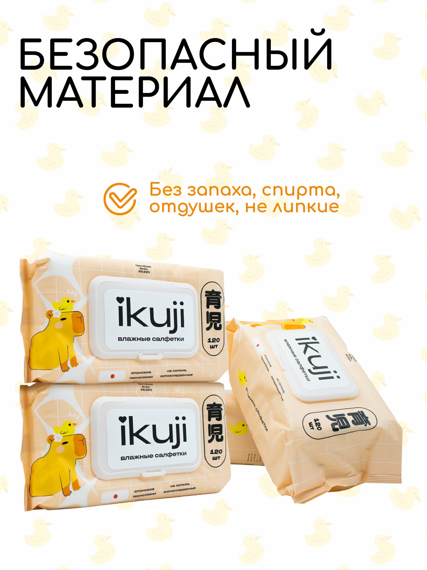 10 цен на Детские влажные салфетки 480 шт. (4 упаковки по 120 шт.) IKUJI гипоаллергенные (99% вода)