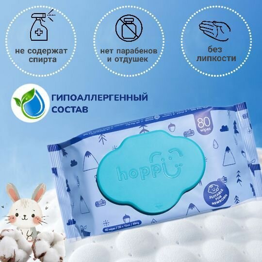 10 цен на Детские влажные салфетки Hoppi Glacier с клапаном, 1х80 шт. (80 штук)