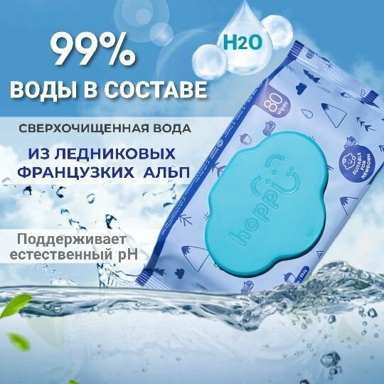 Детские влажные салфетки Hoppi Glacier с клапаном, 1х80 шт. (80 штук) информация: