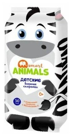 Smart Animals N50 Влажные Детские Салфетки с Ромашкой и Витамином Е 50шт информация: