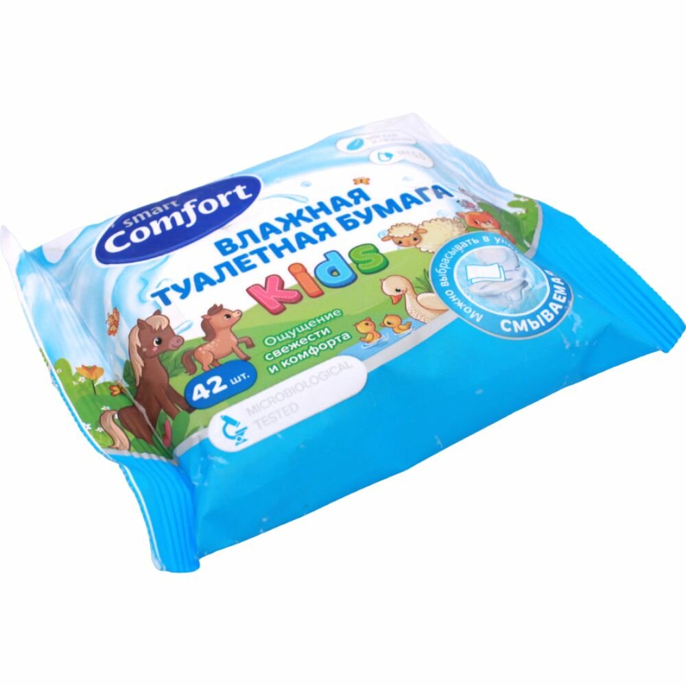 10 цен на Comfort smart Kids влажная туалетная бумага с ромашкой 42 салфеток в упаковке, набор 5 упаковок