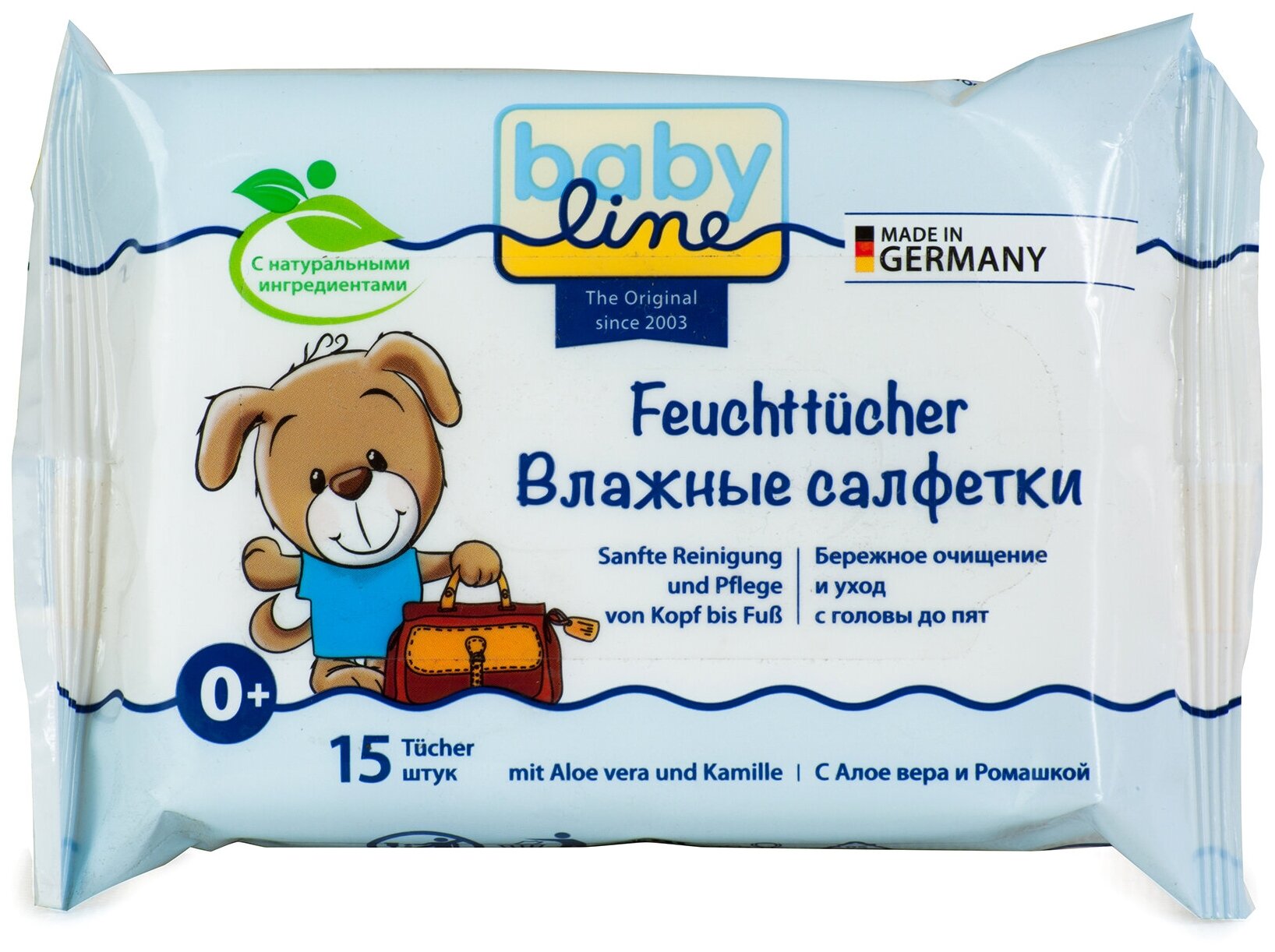 10 цен на Влажные салфетки Baby line для тщательной очистки нежной детской кожи в области подгузников, 15 шт в уп.