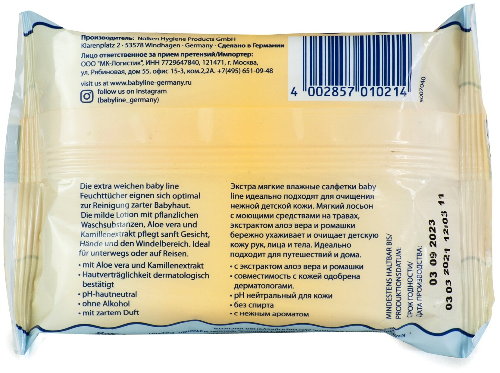 Влажные салфетки Baby line для тщательной очистки нежной детской кожи в области подгузников, 15 шт в уп. информация:
