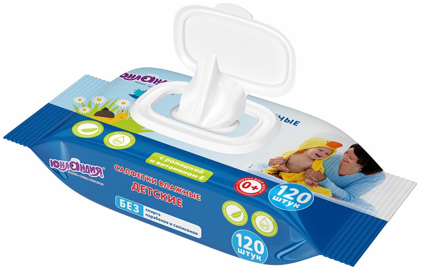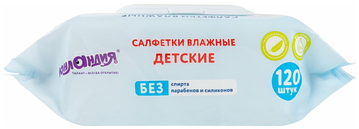 Салфетки влажные 120 шт, детские, универсальные, с пластиковым клапаном, юнландия, 129893 информация: