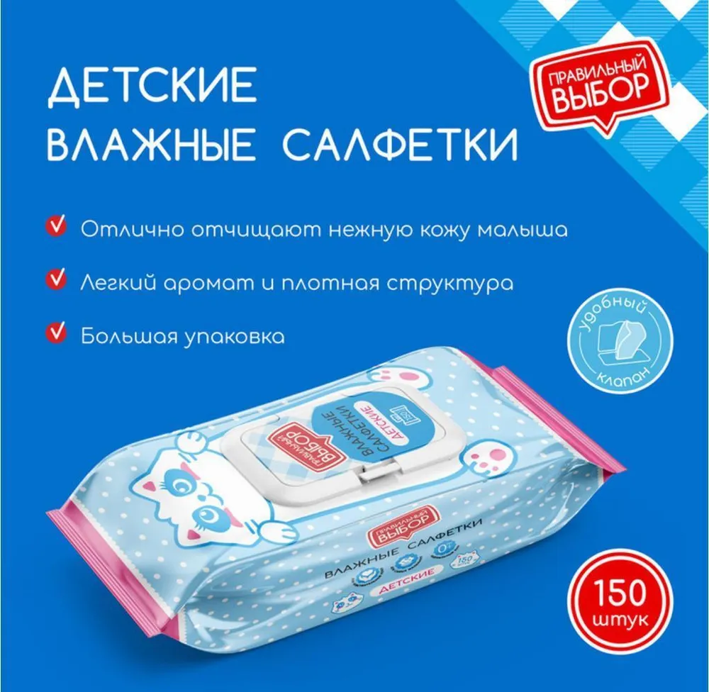 Влажные салфетки детские Правильный выбор 150 шт, 1 упак информация: