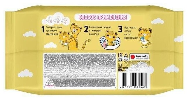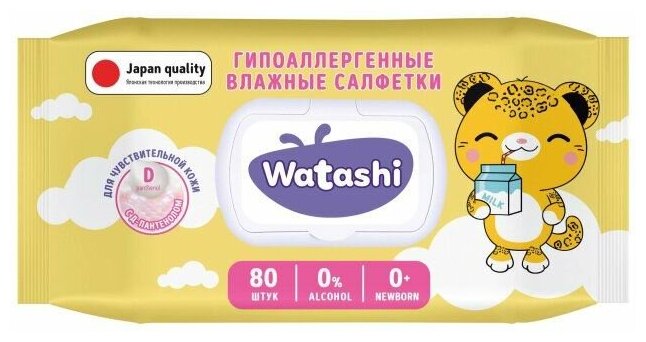 Влажные салфетки WATASHI с Д-пантенолом, для детей 80шт 4752171015487 информация: