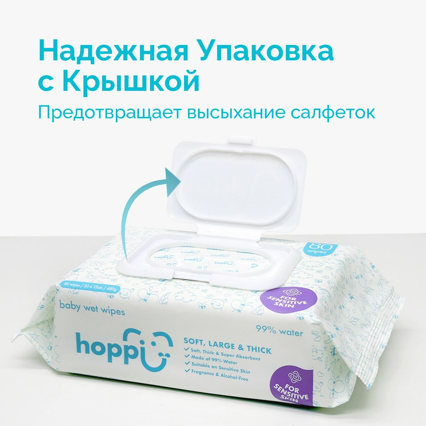 Влажные салфетки детские Hoppi Baby с клапаном, 1х80шт. (80 штук) информация: