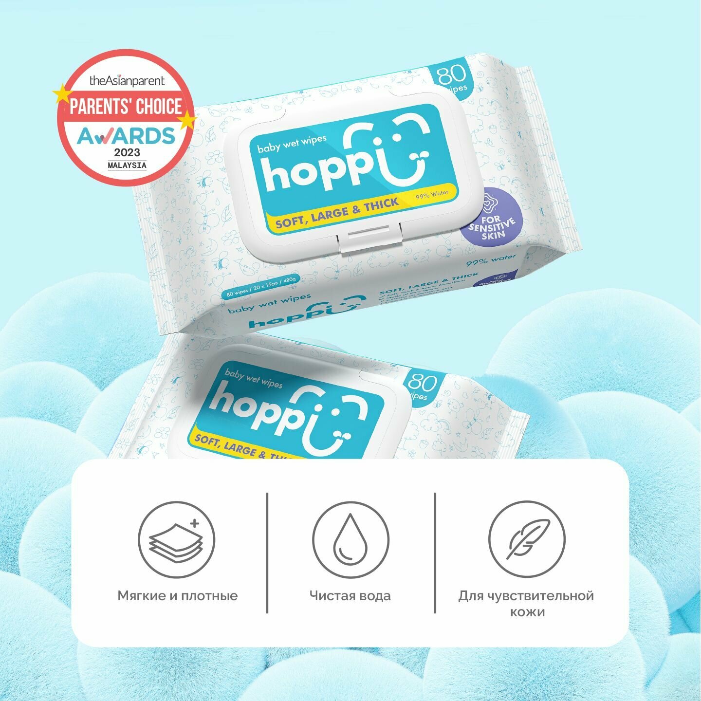 Отзывы на Влажные салфетки детские Hoppi Baby с клапаном, 1х80шт. (80 штук)