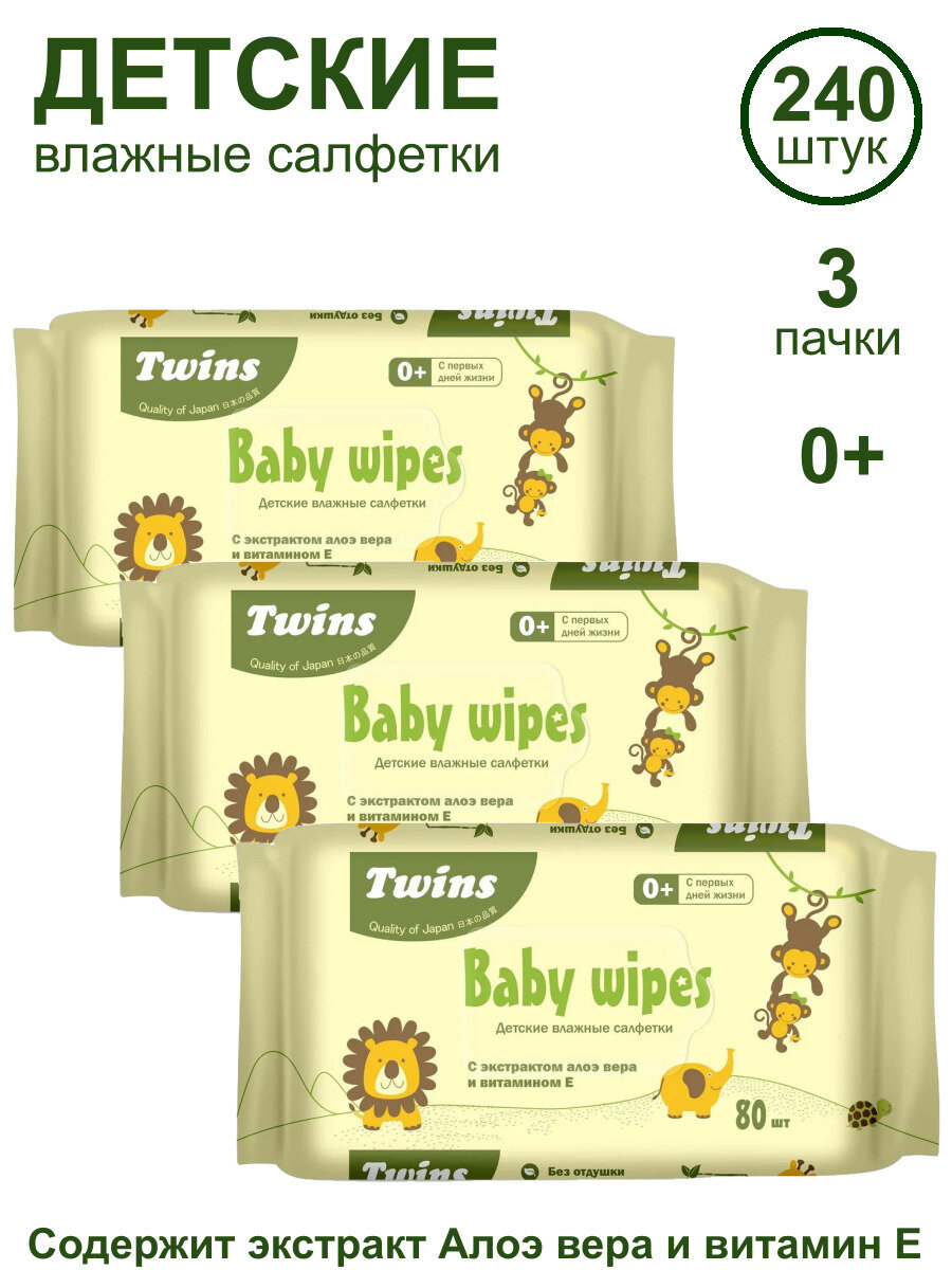 10 цен на Влажные салфетки для детей 0+ TWINS 240 шт (80х3) к экстрактом алоэ, без спирта