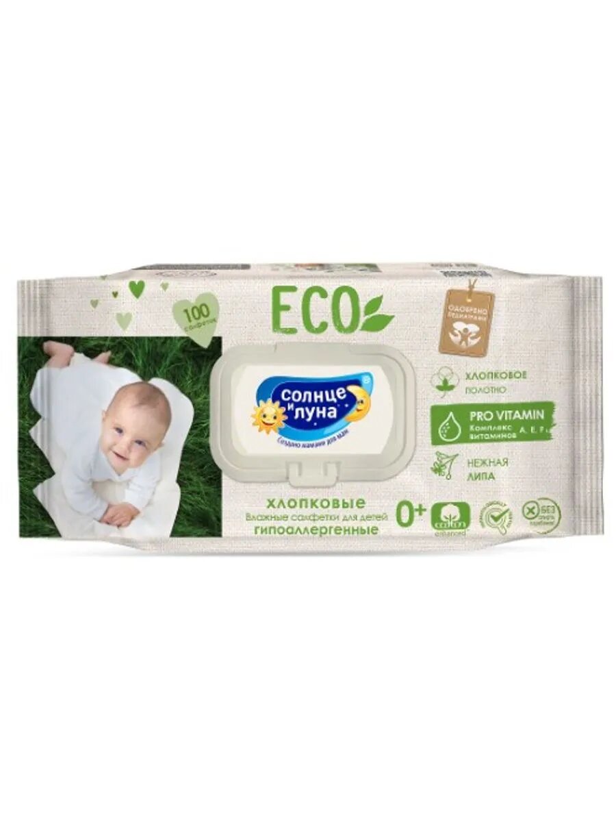 Солнце и луна eco салфетки влаж д/дет хлопковые с витами-1 информация: