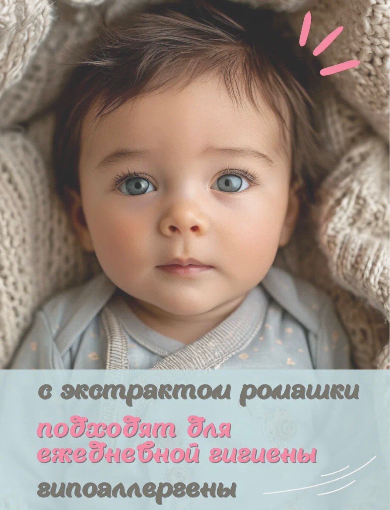 Полотенца детские влажные, очищающие, универсальные, 60шт/уп, 1 упаковка информация: