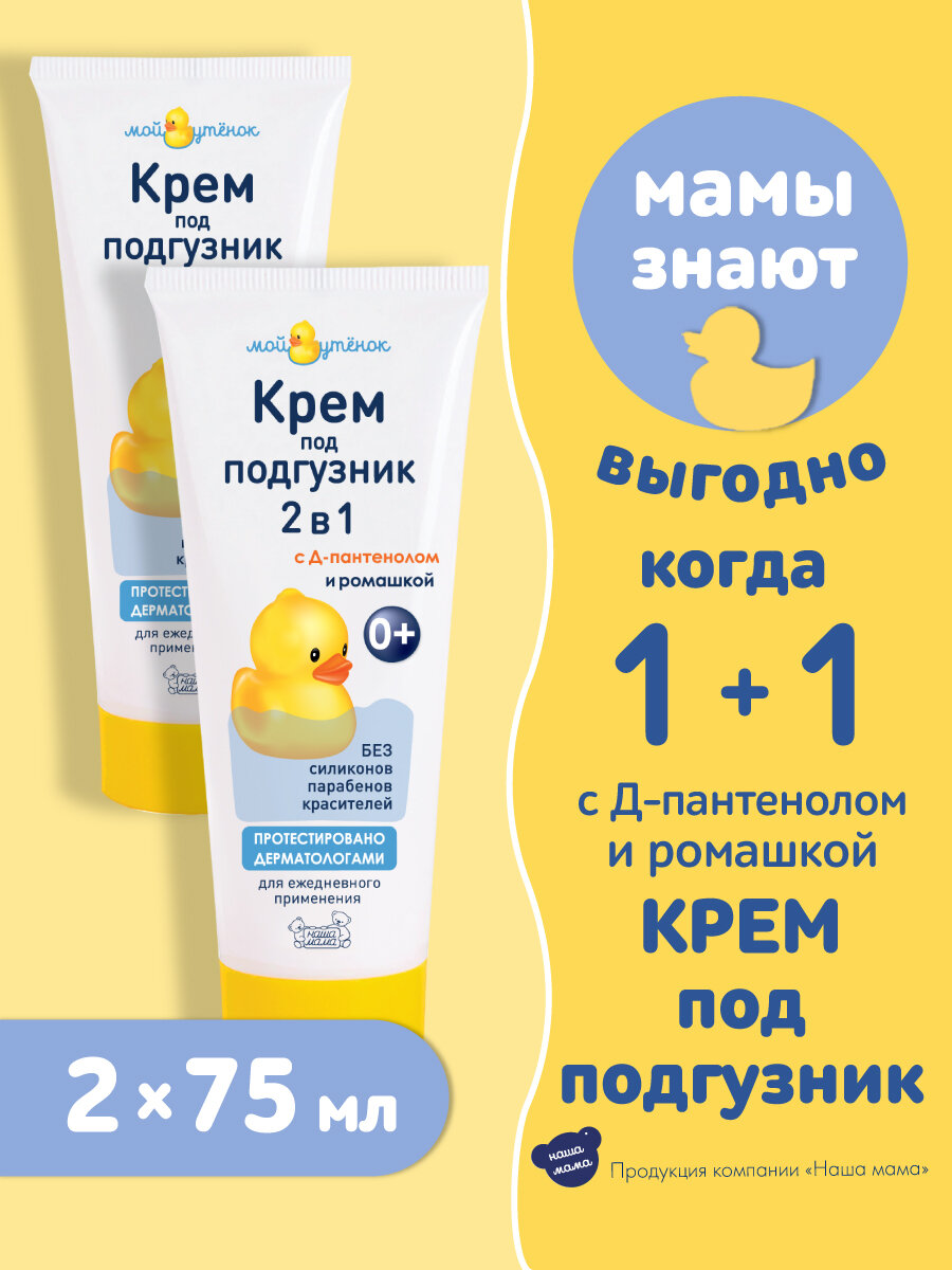 Мой Утенок Набор Детский крем под подгузник 2 в 1 для новорожденных, гипоаллергенный, для ежедневного ухода, 75гр 2шт. информация: