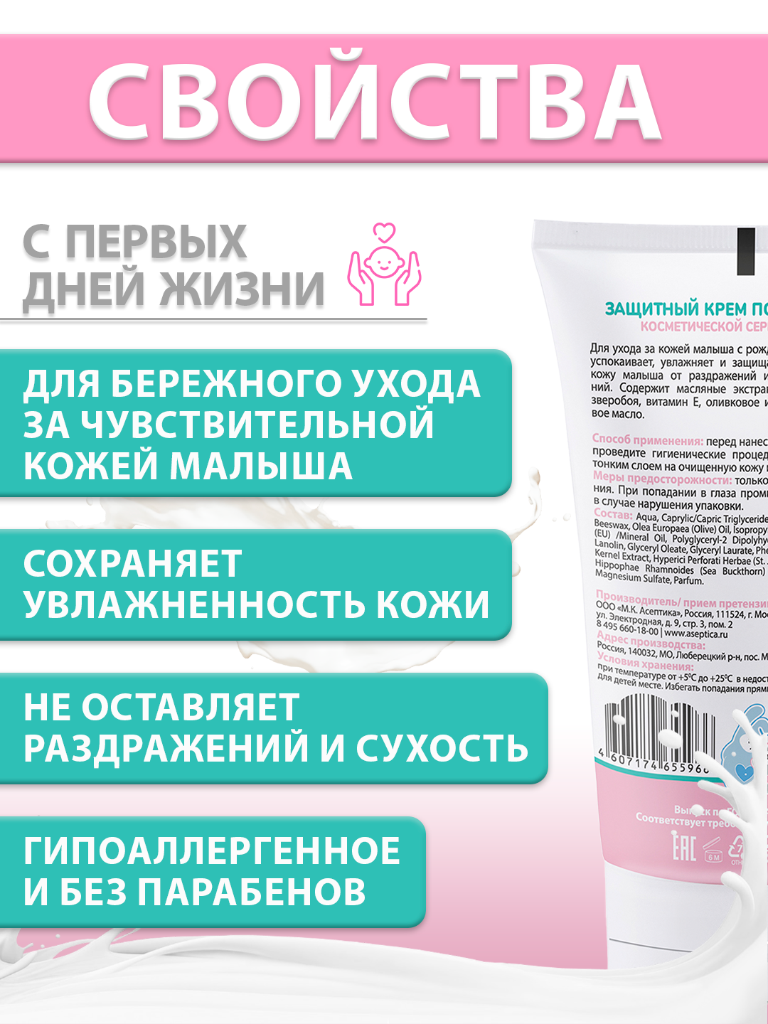 Детский защитный крем под подгузник Зайтята, для новорожденных,150 мл информация: