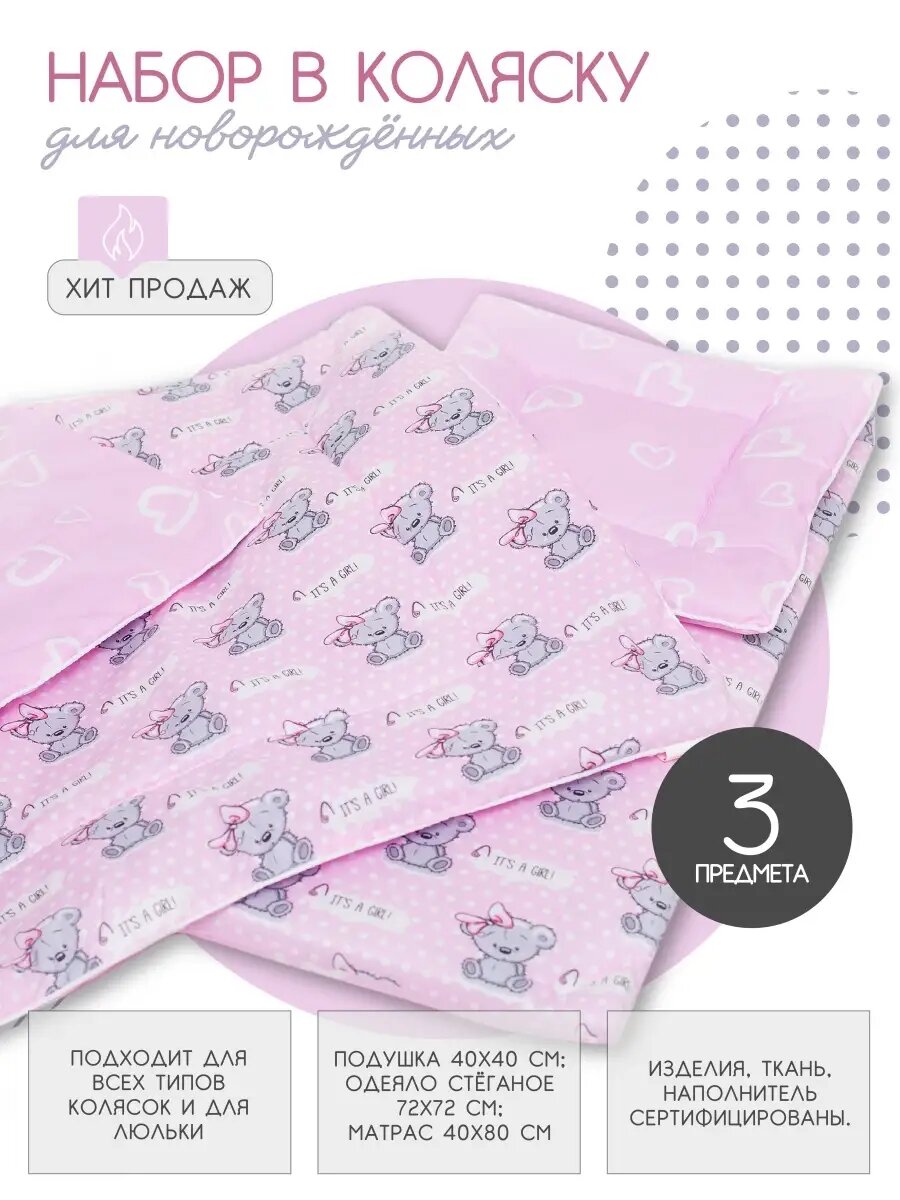 Набор аксессуаров Мой Ангелочек 3 предмета, для коляски, хлопок 100%, розовый информация: