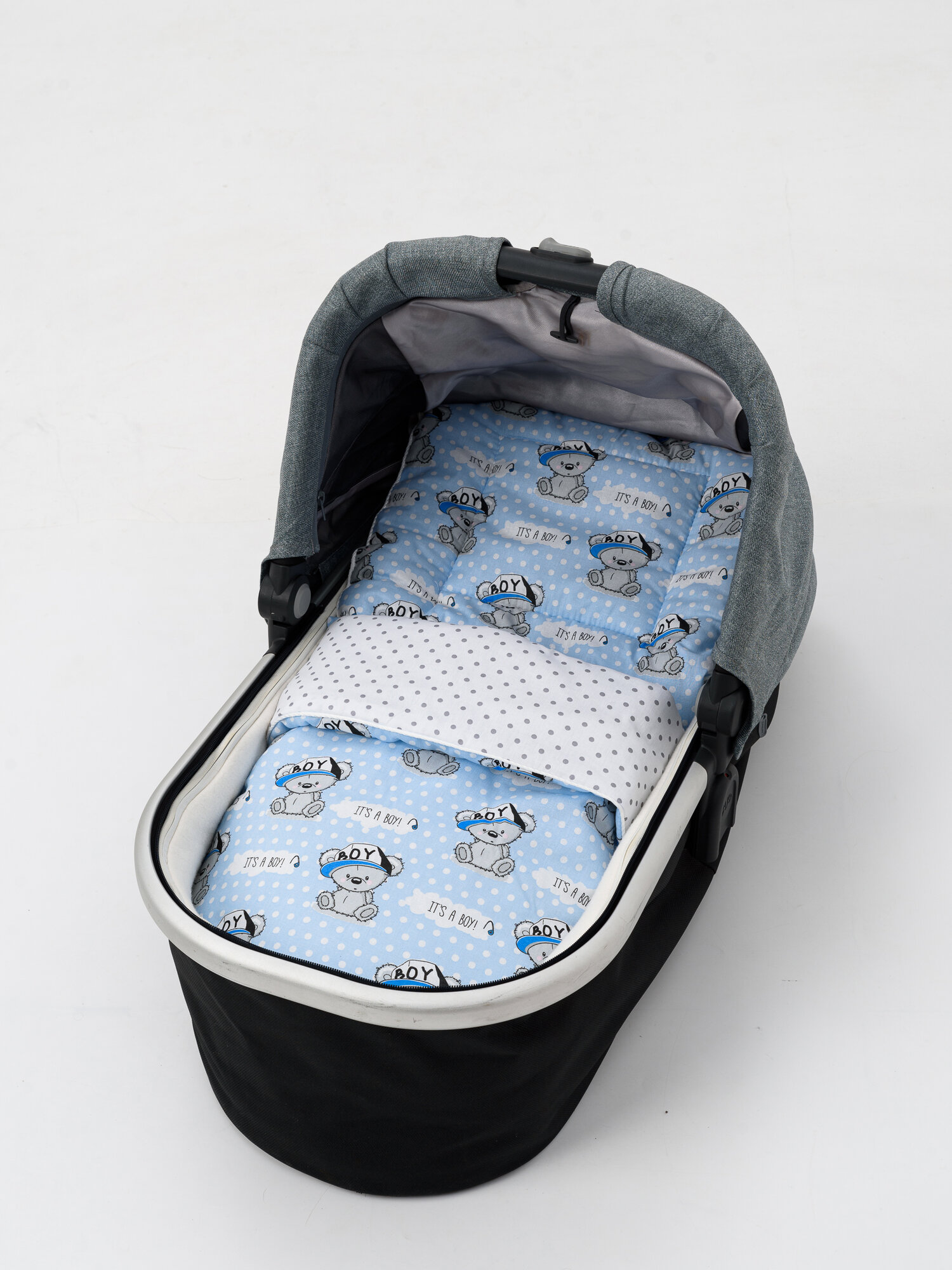 Набор в коляску Мой Ангелочек "Premium", 100 % хлопок, двусторонний, голубой информация: